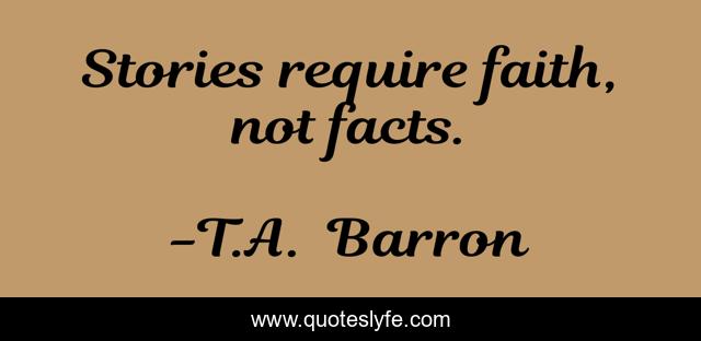 "T.A. Barron Quotes." Quoteslyfe.com, 2025. Mon. 08 Dec. 2025. <https://www.quoteslyfe.com/quote/Stories-require-faith-not-facts-180597>.