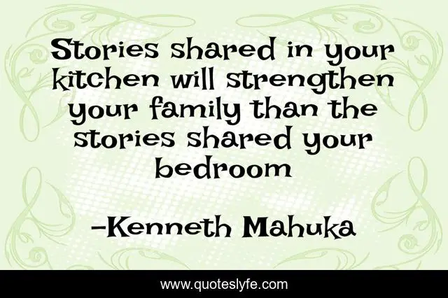 This page presents the quote "Stories shared in your kitchen will strengthen your family than the stories shared your bedroom". Author of this quote is Kenneth Mahuka. This quote is about stories-from-the-heart, family, kitchen,.
