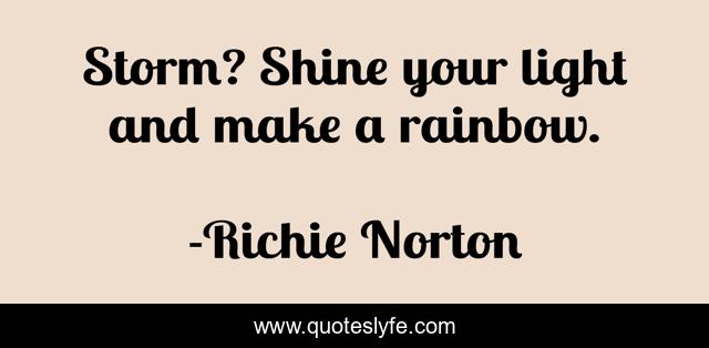 This page presents the quote "Storm? Shine your light and make a rainbow.". Author of this quote is Richie Norton. This quote is about shine, rainbow, richie-norton, light, optimism, positive-thinking, project, storm, eternal-optimist,.
