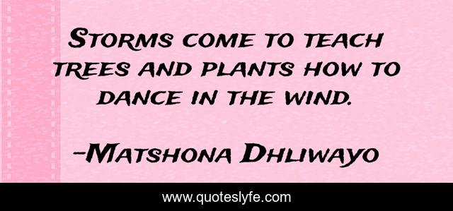 "Matshona Dhliwayo Quotes." Quoteslyfe.com, 2025. Fri. 05 Dec. 2025. <https://www.quoteslyfe.com/quote/Storms-come-to-teach-trees-and-plants-225330>.