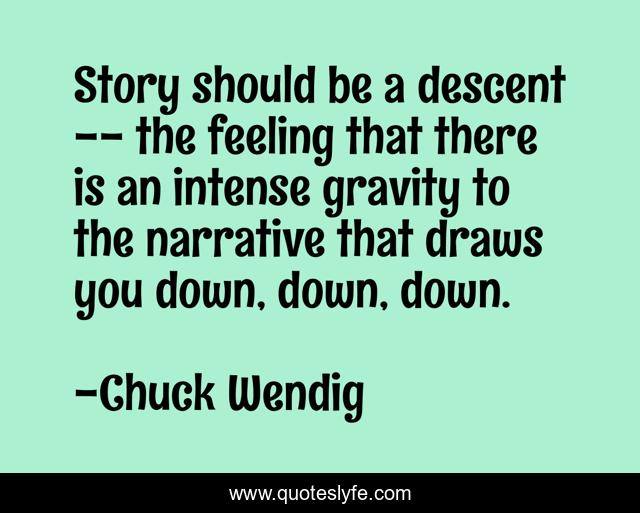 This page presents the quote "Story should be a descent -- the feeling that there is an intense gravity to the narrative that draws you down, down, down.". Author of this quote is Chuck Wendig. This quote is about advice, narrative, story, writing,.
