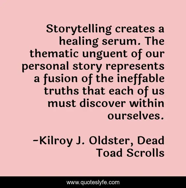 "Kilroy J. Oldster, Dead Toad Scrolls Quotes." Quoteslyfe.com, 2025. Tue. 09 Dec. 2025. <https://www.quoteslyfe.com/quote/Storytelling-creates-a-healing-serum-The-thematic-160470>.