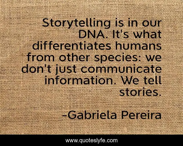"Gabriela Pereira Quotes." Quoteslyfe.com, 2025. Sat. 06 Dec. 2025. <https://www.quoteslyfe.com/quote/Storytelling-is-in-our-DNA-It-s-226989>.