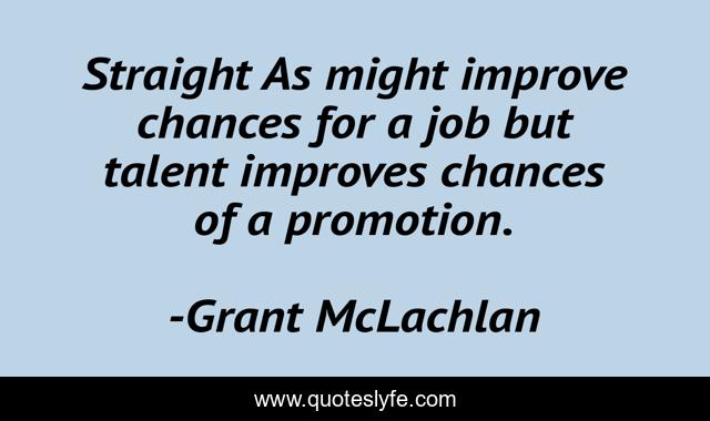 This page presents the quote "Straight As might improve chances for a job but talent improves chances of a promotion.". Author of this quote is Grant McLachlan. .