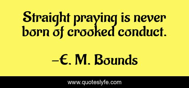 This page presents the quote "Straight praying is never born of crooked conduct.". Author of this quote is E. M. Bounds. .