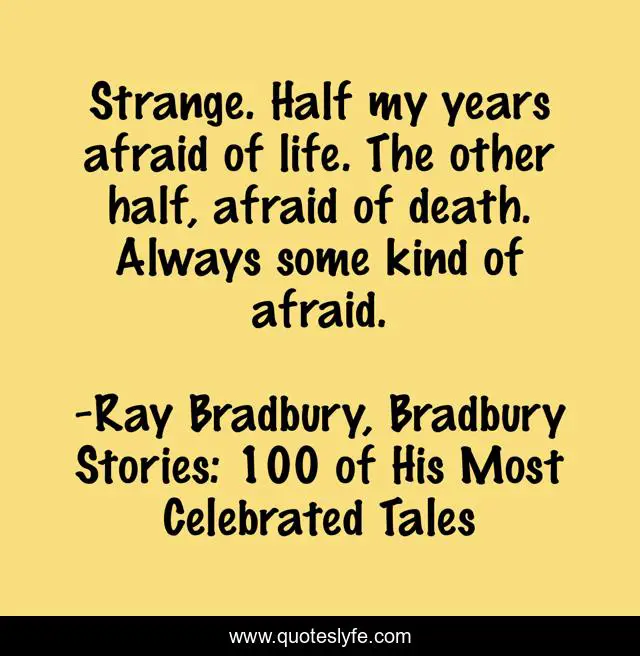 "Ray Bradbury, Bradbury Stories: 100 of His Most Celebrated Tales Quotes." Quoteslyfe.com, 2025. Tue. 09 Dec. 2025. <https://www.quoteslyfe.com/quote/Strange-Half-my-years-afraid-of-life-45486>.