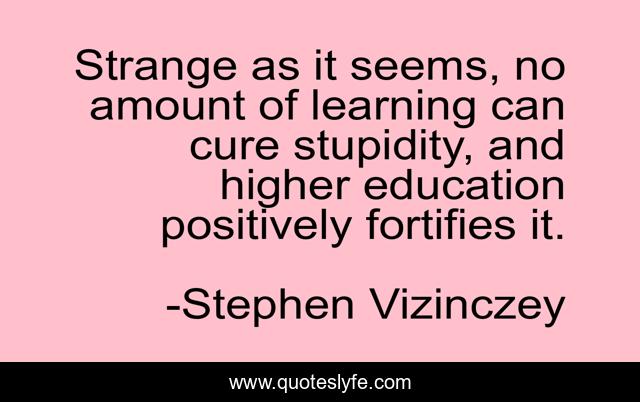 This page presents the quote "Strange as it seems, no amount of learning can cure stupidity, and higher education positively fortifies it.". Author of this quote is Stephen Vizinczey. This quote is about stupidity, education,.