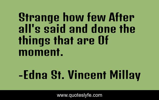 This page presents the quote "Strange how few After all's said and done the things that are Of moment.". Author of this quote is Edna St. Vincent Millay. .