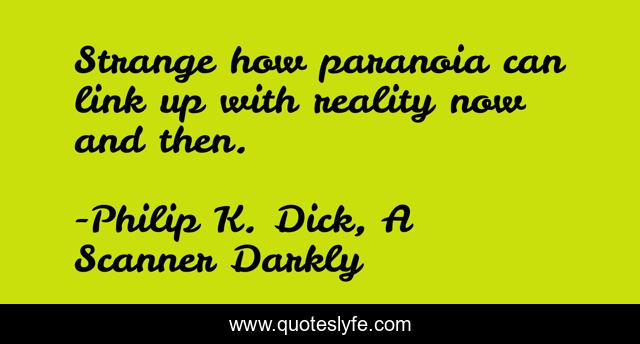 This page presents the quote "Strange how paranoia can link up with reality now and then.". Author of this quote is Philip K. Dick, A Scanner Darkly. This quote is about paranoia, reality,.