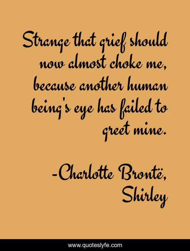 "Charlotte Brontë, Shirley Quotes." Quoteslyfe.com, 2025. Mon. 08 Dec. 2025. <https://www.quoteslyfe.com/quote/Strange-that-grief-should-now-almost-choke-124859>.