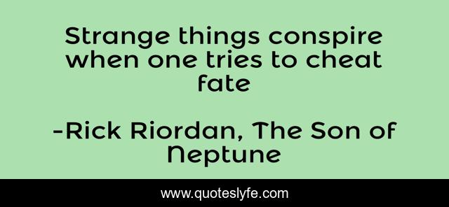 This page presents the quote "Strange things conspire when one tries to cheat fate". Author of this quote is Rick Riordan, The Son of Neptune. This quote is about karma, fate,.