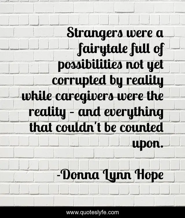 "Donna Lynn Hope Quotes." Quoteslyfe.com, 2025. Sat. 06 Dec. 2025. <https://www.quoteslyfe.com/quote/Strangers-were-a-fairytale-full-of-possibilities-119608>.