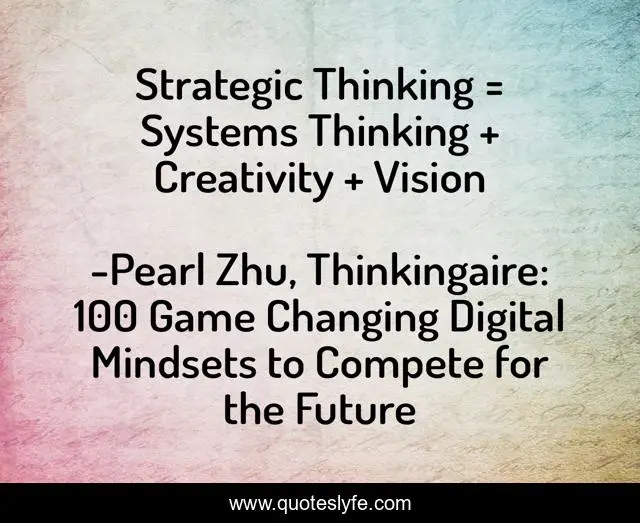 "Pearl Zhu, Thinkingaire: 100 Game Changing Digital Mindsets to Compete for the Future Quotes." Quoteslyfe.com, 2025. Fri. 05 Dec. 2025. <https://www.quoteslyfe.com/quote/Strategic-Thinking-Systems-Thinking-Creativity-Vision-108060>.