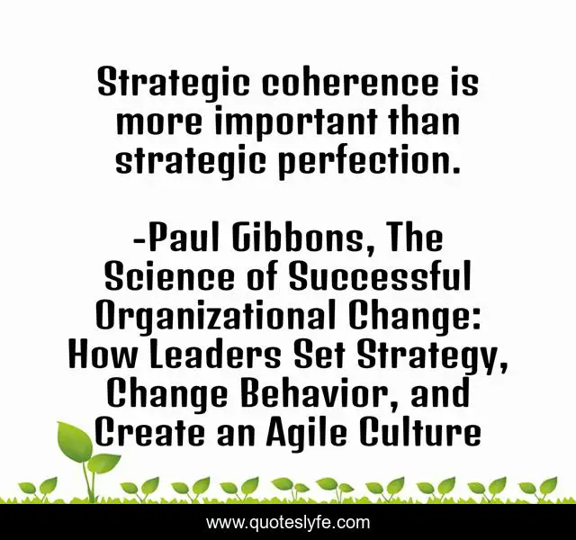 "Paul Gibbons, The Science of Successful Organizational Change: How Leaders Set Strategy, Change Behavior, and Create an Agile Culture Quotes." Quoteslyfe.com, 2025. Mon. 08 Dec. 2025. <https://www.quoteslyfe.com/quote/Strategic-coherence-is-more-important-than-strategic-235460>.