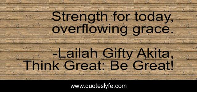 "Lailah Gifty Akita, Think Great: Be Great! Quotes." Quoteslyfe.com, 2025. Fri. 05 Dec. 2025. <https://www.quoteslyfe.com/quote/Strength-for-today-overflowing-grace-104645>.