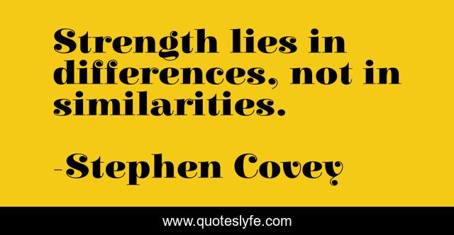 This page presents the quote "Strength lies in differences, not in similarities.". Author of this quote is Stephen Covey. This quote is about similarities, differences,.