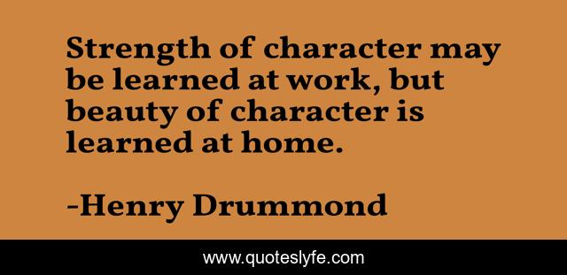 This page presents the quote "Strength of character may be learned at work, but beauty of character is learned at home.". Author of this quote is Henry Drummond. This quote is about work, strength, beauty,.