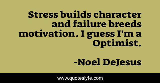 This page presents the quote "Stress builds character and failure breeds motivation. I guess I'm a Optimist.". Author of this quote is Noel DeJesus. This quote is about failure, motivation, leadership, success, optimist,.