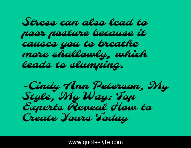 "Cindy Ann Peterson, My Style, My Way: Top Experts Reveal How to Create Yours Today Quotes." Quoteslyfe.com, 2025. Fri. 05 Dec. 2025. <https://www.quoteslyfe.com/quote/Stress-can-also-lead-to-poor-posture-141065>.