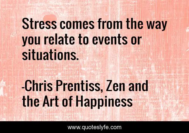 This page presents the quote "Stress comes from the way you relate to events or situations.". Author of this quote is Chris Prentiss, Zen and the Art of Happiness. This quote is about life, zen-and-the-art-of-happiness, philosophy, zen, stress, stress-management, happiness,.