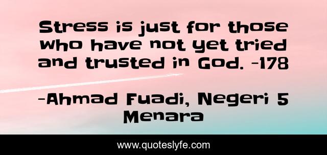 This page presents the quote "Stress is just for those who have not yet tried and trusted in God. -178". Author of this quote is Ahmad Fuadi, Negeri 5 Menara. .