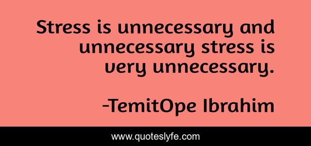 "TemitOpe Ibrahim Quotes." Quoteslyfe.com, 2025. Fri. 05 Dec. 2025. <https://www.quoteslyfe.com/quote/Stress-is-unnecessary-and-unnecessary-stress-is-192241>.