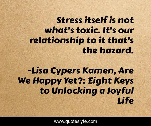 "Lisa Cypers Kamen, Are We Happy Yet?: Eight Keys to Unlocking a Joyful Life Quotes." Quoteslyfe.com, 2025. Sat. 06 Dec. 2025. <https://www.quoteslyfe.com/quote/Stress-itself-is-not-what-s-toxic-245435>.