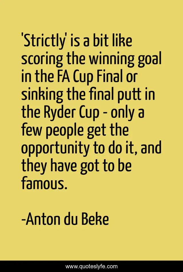 This page presents the quote "'Strictly' is a bit like scoring the winning goal in the FA Cup Final or sinking the final putt in the Ryder Cup - only a few people get the opportunity to do it, and they have got to be famous.". Author of this quote is Anton du Beke. This quote is about opportunity, goal, winning,.