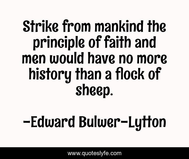 This page presents the quote "Strike from mankind the principle of faith and men would have no more history than a flock of sheep.". Author of this quote is Edward Bulwer-Lytton. This quote is about faith, unity,.