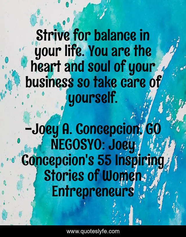 "Joey A. Concepcion, GO NEGOSYO: Joey Concepcion's 55 Inspiring Stories of Women Entrepreneurs Quotes." Quoteslyfe.com, 2025. Mon. 08 Dec. 2025. <https://www.quoteslyfe.com/quote/Strive-for-balance-in-your-life-You-128781>.