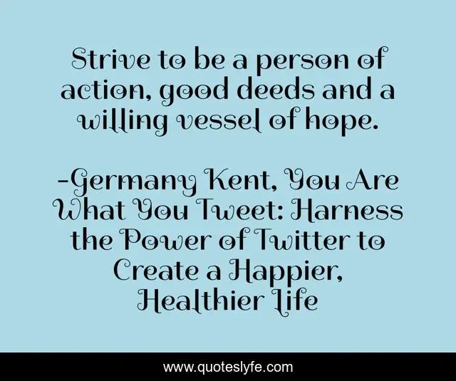 "Germany Kent, You Are What You Tweet: Harness the Power of Twitter to Create a Happier, Healthier Life Quotes." Quoteslyfe.com, 2025. Fri. 05 Dec. 2025. <https://www.quoteslyfe.com/quote/Strive-to-be-a-person-of-action-140216>.