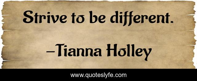 This page presents the quote "Strive to be different.". Author of this quote is Tianna Holley. This quote is about different, advice-for-daily-living, strive,.