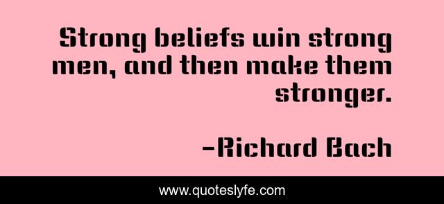 This page presents the quote "Strong beliefs win strong men, and then make them stronger.". Author of this quote is Richard Bach. This quote is about win, strong, stronger,.