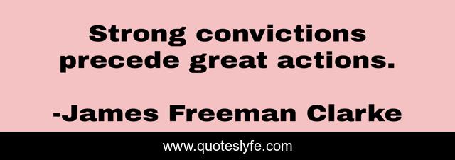 This page presents the quote "Strong convictions precede great actions.". Author of this quote is James Freeman Clarke. This quote is about great, strong, actions,.