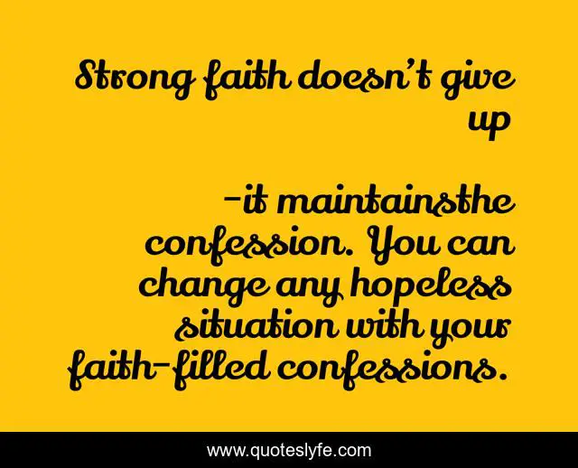 "it maintainsthe confession. You can change any hopeless situation with your faith-filled confessions. Quotes." Quoteslyfe.com, 2025. Fri. 05 Dec. 2025. <https://www.quoteslyfe.com/quote/Strong-faith-doesn-t-give-up-104658>.