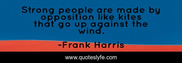 This page presents the quote "Strong people are made by opposition like kites that go up against the wind.". Author of this quote is Frank Harris. .