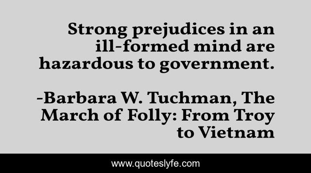 "Barbara W. Tuchman, The March of Folly: From Troy to Vietnam Quotes." Quoteslyfe.com, 2025. Mon. 08 Dec. 2025. <https://www.quoteslyfe.com/quote/Strong-prejudices-in-an-ill-formed-mind-160960>.