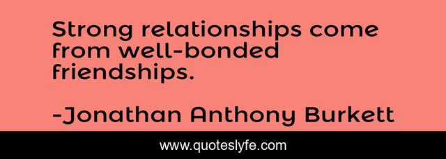 This page presents the quote "Strong relationships come from well-bonded friendships.". Author of this quote is Jonathan Anthony Burkett. This quote is about relationships, friendship, life, love, affection,.
