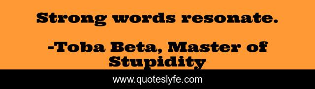 "Toba Beta, Master of Stupidity Quotes." Quoteslyfe.com, 2025. Sat. 06 Dec. 2025. <https://www.quoteslyfe.com/quote/Strong-words-resonate-112576>.