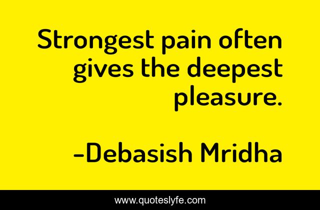 This page presents the quote "Strongest pain often gives the deepest pleasure.". Author of this quote is Debasish Mridha. This quote is about debasish, pain, mridha, strongest-pain, philosophy, debasish-mridha, pleasure, deepest-pleasure, gives,.
