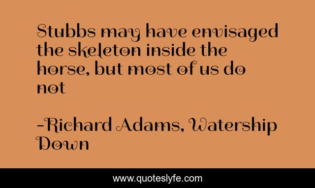 This page presents the quote "Stubbs may have envisaged the skeleton inside the horse, but most of us do not". Author of this quote is Richard Adams, Watership Down. This quote is about foresight, vision, innovation,.