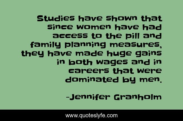 This page presents the quote "Studies have shown that since women have had access to the pill and family planning measures, they have made huge gains in both wages and in careers that were dominated by men.". Author of this quote is Jennifer Granholm. This quote is about planning, men, women,.