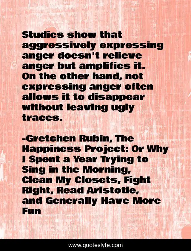 "Gretchen Rubin, The Happiness Project: Or Why I Spent a Year Trying to Sing in the Morning, Clean My Closets, Fight Right, Read Aristotle, and Generally Have More Fun Quotes." Quoteslyfe.com, 2025. Tue. 30 Dec. 2025. <https://www.quoteslyfe.com/quote/Studies-show-that-aggressively-expressing-anger-doesn-161360>.