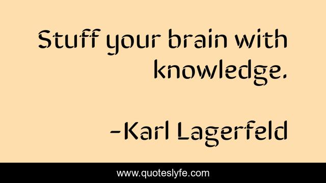 This page presents the quote "Stuff your brain with knowledge.". Author of this quote is Karl Lagerfeld. This quote is about knownledge, designer, success, brain, mind, life, educational, quotes, stuff,.