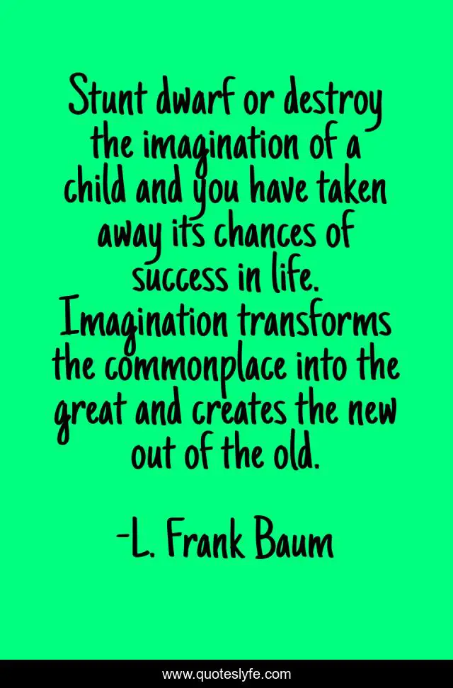 "L. Frank Baum Quotes." Quoteslyfe.com, 2025. Sat. 06 Dec. 2025. <https://www.quoteslyfe.com/quote/Stunt-dwarf-or-destroy-the-imagination-of-32145>.