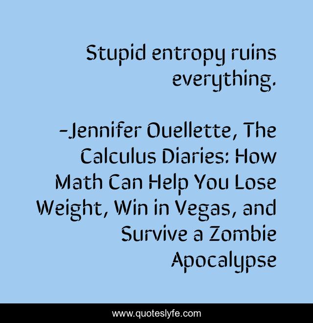 "Jennifer Ouellette, The Calculus Diaries: How Math Can Help You Lose Weight, Win in Vegas, and Survive a Zombie Apocalypse Quotes." Quoteslyfe.com, 2025. Mon. 08 Dec. 2025. <https://www.quoteslyfe.com/quote/Stupid-entropy-ruins-everything-149457>.