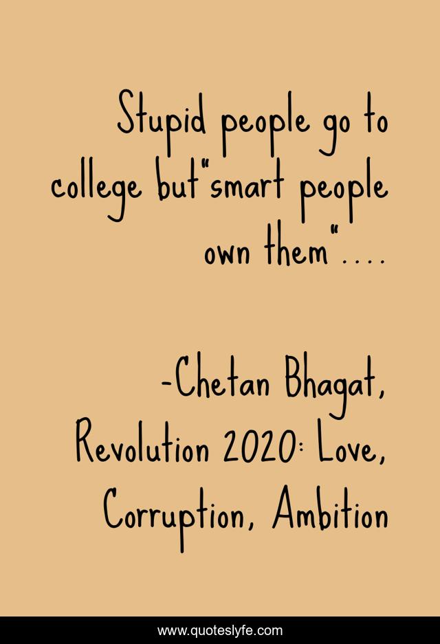 This page presents the quote "Stupid people go to college but"smart people own them"....". Author of this quote is Chetan Bhagat, Revolution 2020: Love, Corruption, Ambition. .