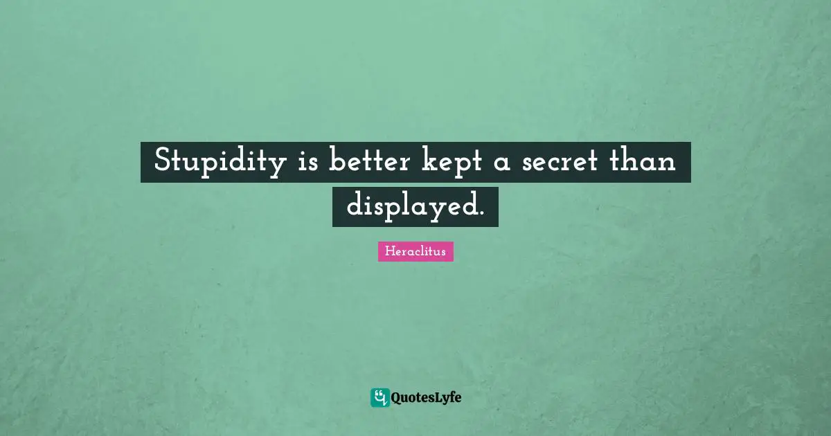 "Heraclitus Quotes." Quoteslyfe.com, 2025. Sun. 21 Dec. 2025. <https://www.quoteslyfe.com/quote/Stupidity-is-better-kept-a-secret-than-651214>.