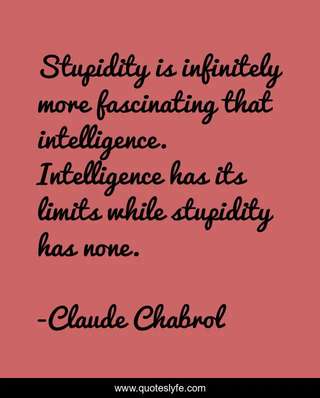 This page presents the quote "Stupidity is infinitely more fascinating that intelligence. Intelligence has its limits while stupidity has none.". Author of this quote is Claude Chabrol. This quote is about stupidity, while, limits,.