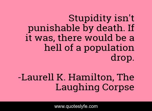 This page presents the quote "Stupidity isn't punishable by death. If it was, there would be a hell of a population drop.". Author of this quote is Laurell K. Hamilton, The Laughing Corpse. This quote is about anita-blake, stupidity,.